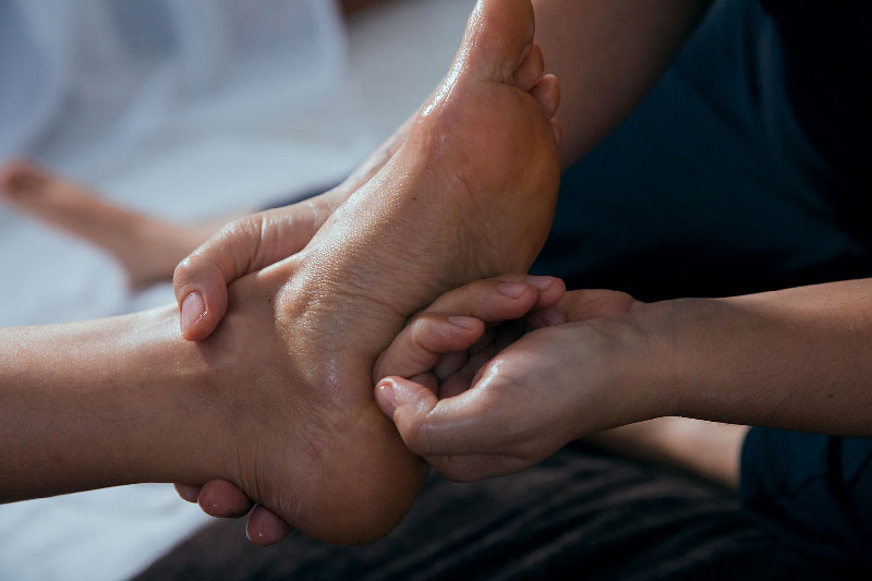 Massage Kansu des pieds : au beurre clarifié. Détend tout le corps, invite au lâcher-prise.